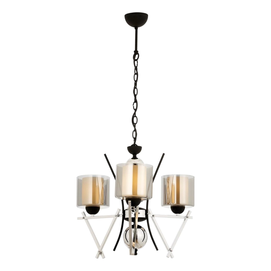 Ljuskrona med kedja VARANA 3xE27/40W/230V svart/polerad krom