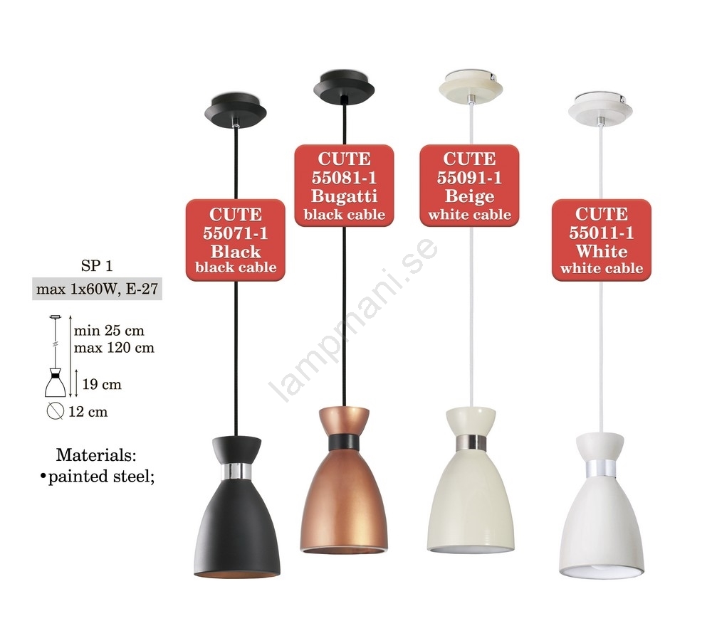 • Ljuskrona med textilsladd CUTE 1xE27/60W/230V
