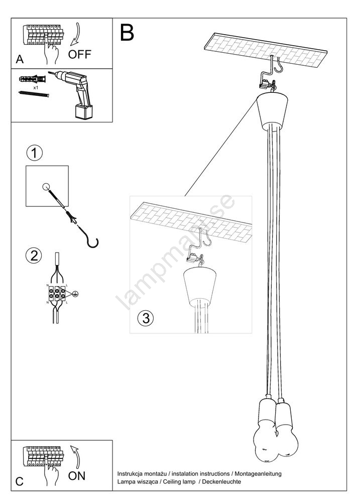 • Ljuskrona med snöre DIEGO 3xE27/60W/230V