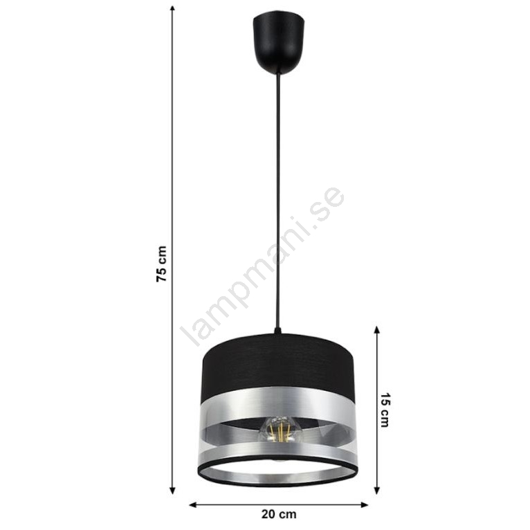Ljuskrona med snöre MILO 1xE27/60W/230V silver/svart | Lampmani