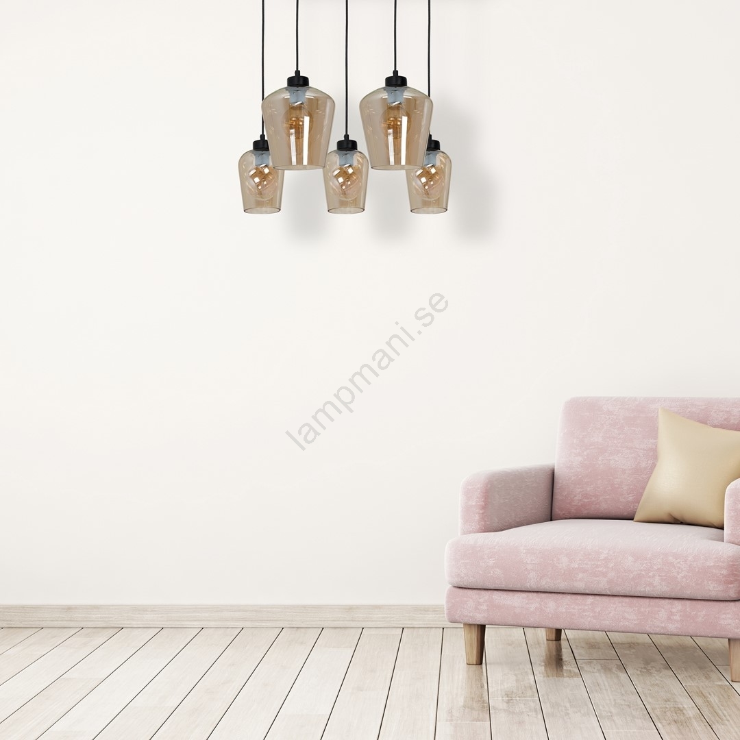 Ljuskrona med snöre SANTIAGO 5xE27/60W/230V brun | Lampmani