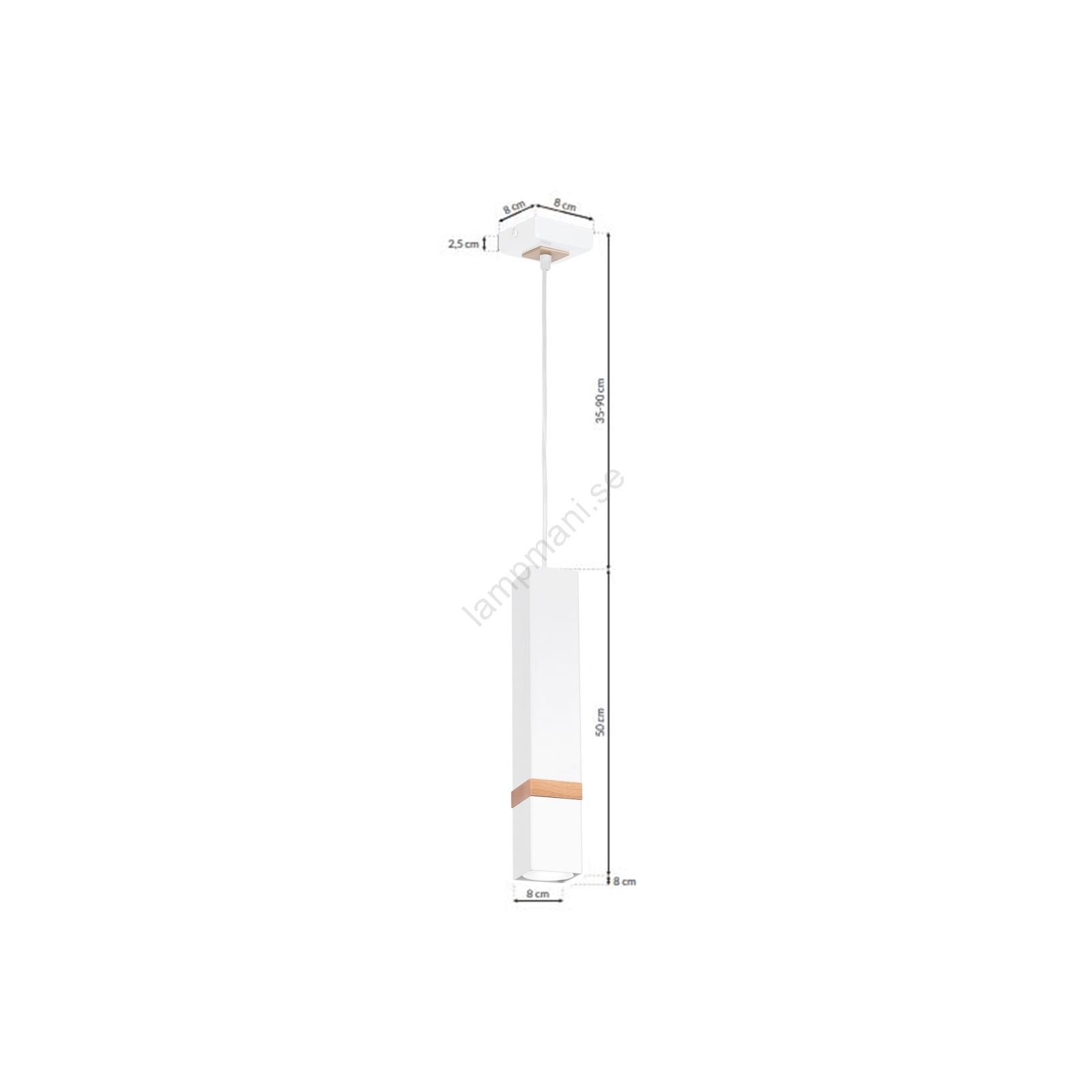 • Justerbar höjd på taklampan 350-900 mm.
