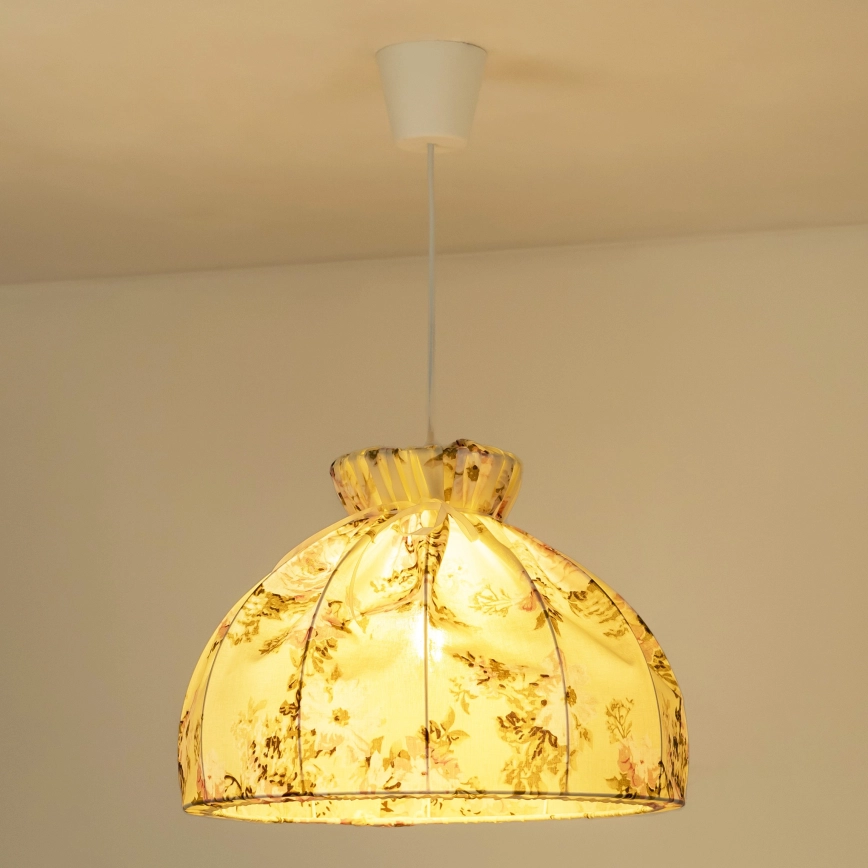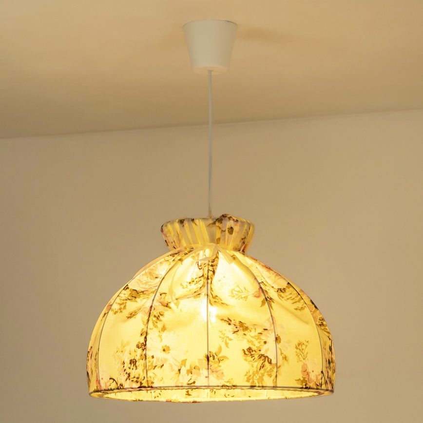 Duolla - Ljuskrona med textilsladd VIOLIN 1xE27/40W/230V diameter 38 cm ros kännetecknar snygg och funktionell design. En glödlampa med E27 lock är lämplig för lampan. Här kan du köpa andra glödlampor till förmånliga priser. Du kommer att få ett intressant tillägg till ditt hem.