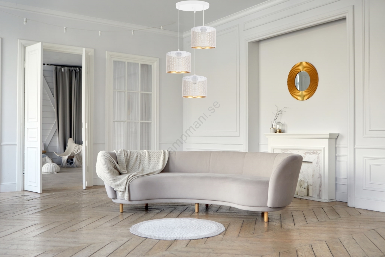 Ljuskrona med textilsladd ALDO 3xE27/60W/230V diameter 45 cm vit | Lampmani