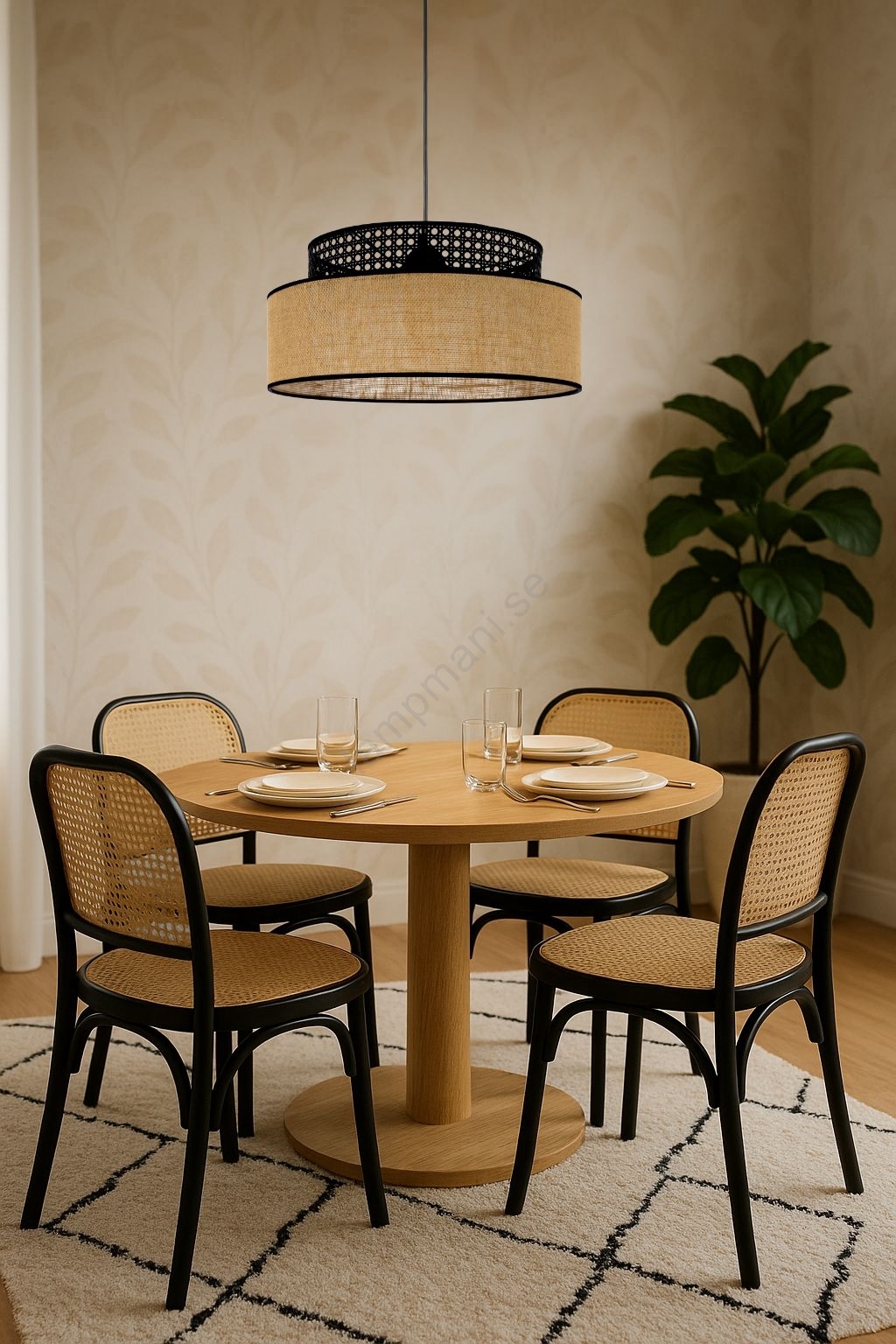 • Ljuskrona med textilsladd BOHO 1xE27/60W/230V diameter 40 cm svart/rotting