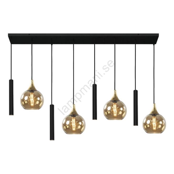 Ljuskrona med textilsladd CALYPSO 4xGU10/60W/230V + 4xE27/60W svart/guld | Lampmani
