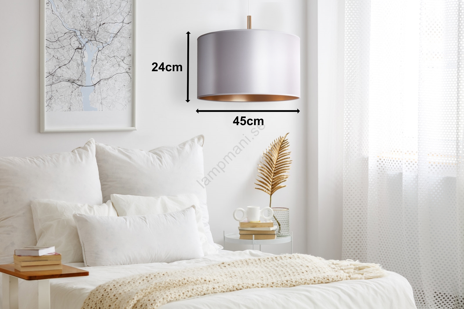 Duolla - Ljuskrona med textilsladd CANNES 1xE27/15W/230V diameter 45 cm silver/koppar kännetecknar snygg och funktionell design. En glödlampa med E27 lock är lämplig för lampan. Här kan du köpa andra glödlampor till förmånliga priser. Du kommer att få ett intressant tillägg till ditt hem.