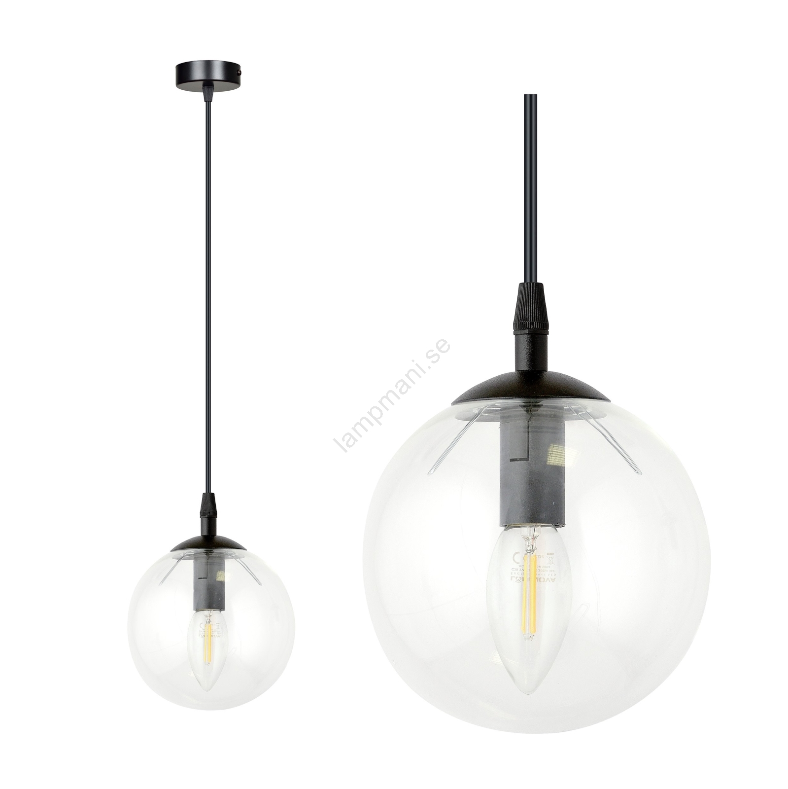 Ljuskrona med textilsladd COSMO 1xE14/10W/230V diameter 14 cm svart/genomskinlig | Lampmani