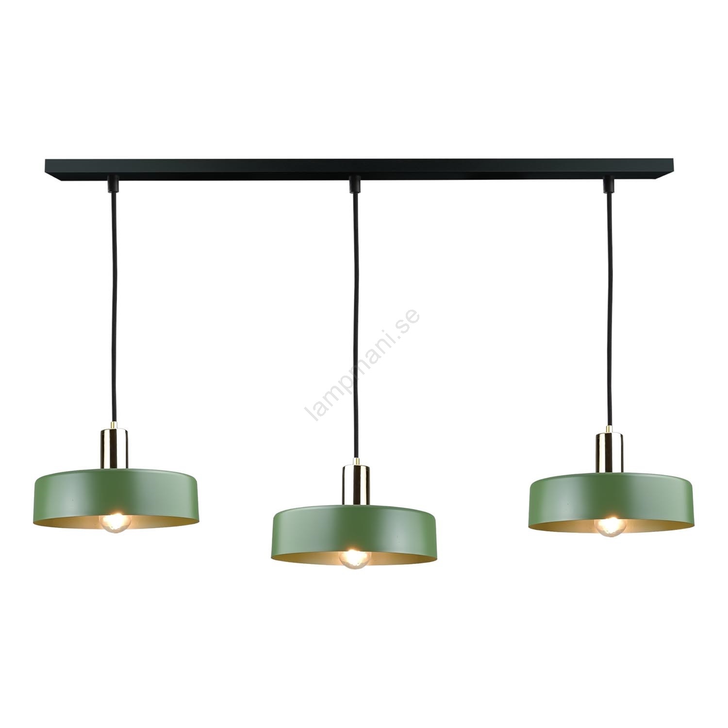 Ljuskrona med textilsladd HAKI 3xE27/60W/230V grön/svart/skinande krom | Lampmani