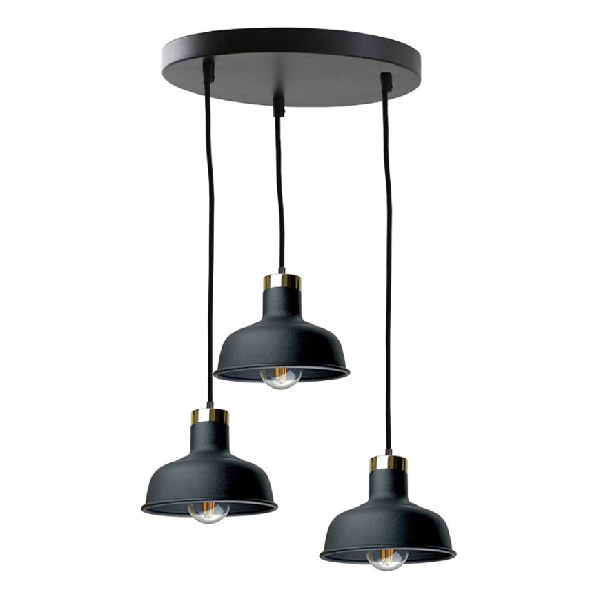 Ljuskrona med textilsladd HEBE 3xE27/60W/230V svart