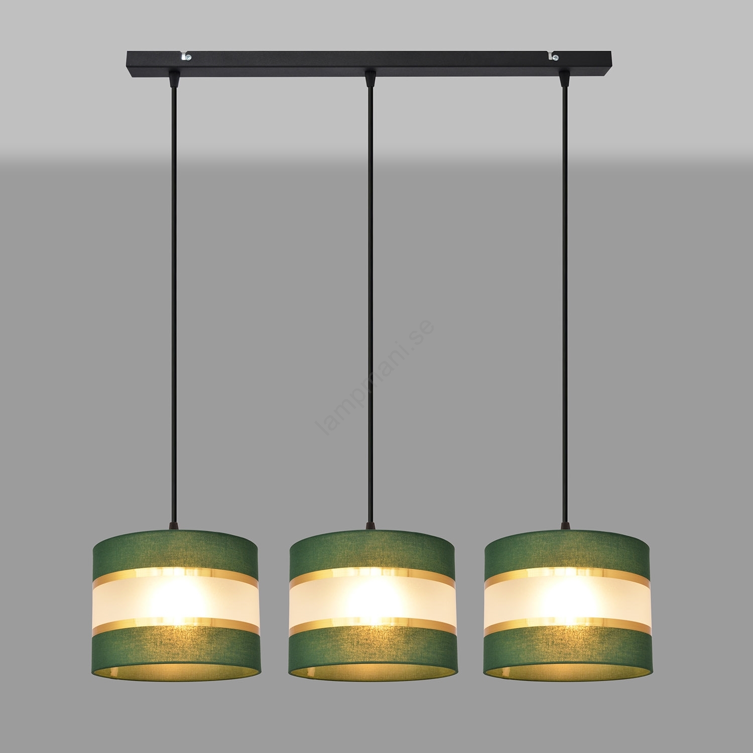 Ljuskrona med textilsladd HELEN 3xE27/15W/230V grön/guld | Lampmani