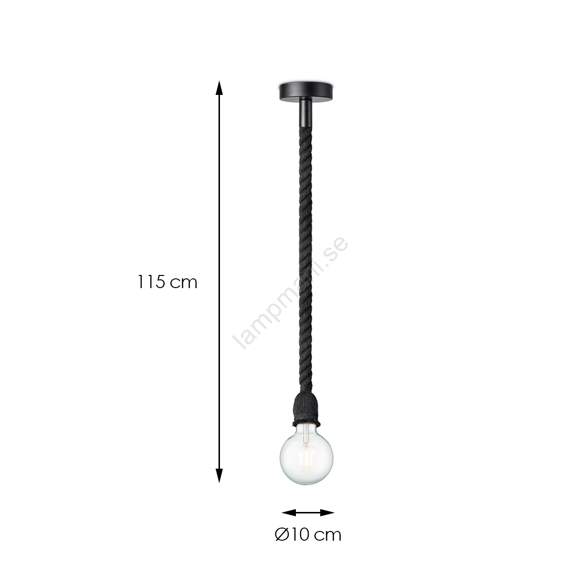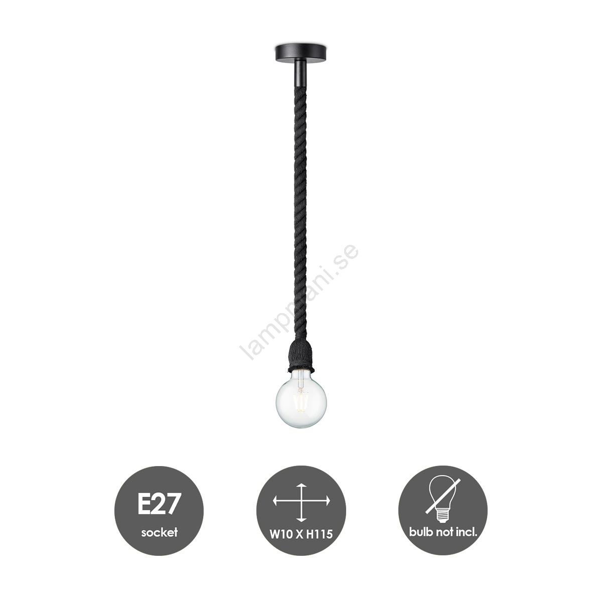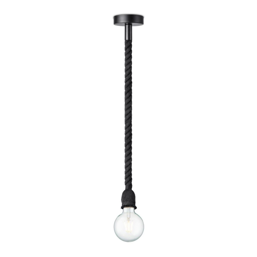 Ljuskrona med textilsladd LEONARDO ROPE 1xE27/10W/230V svart | Lampmani