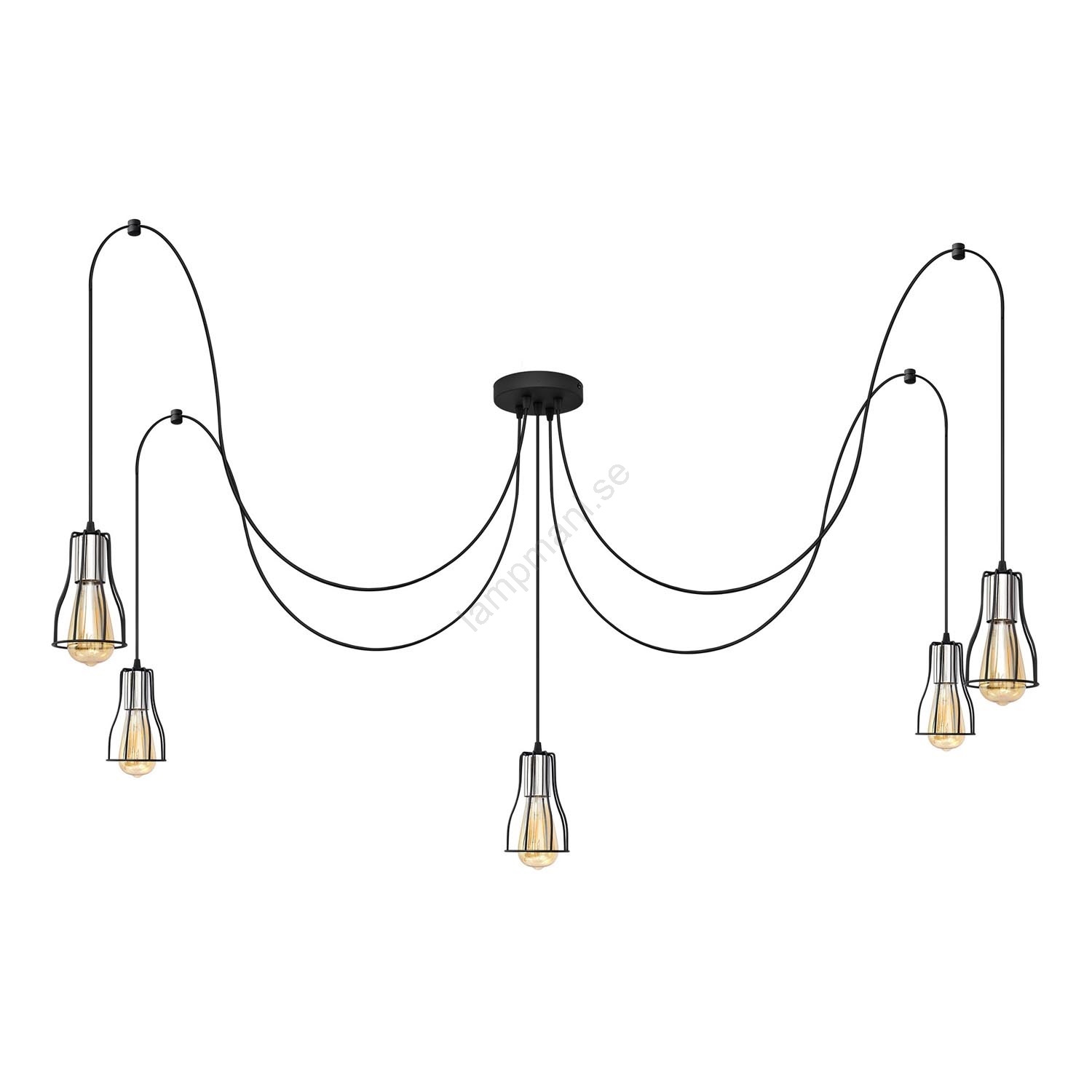 Ljuskrona med textilsladd TUBE 5xE27/15W/230V spindel svart/skinande krom kännetecknar snygg och funktionell design. En glödlampa med E27 lock är lämplig för lampan. Här kan du köpa andra glödlampor till förmånliga priser. Du kommer att få ett intressant tillägg till ditt hem.