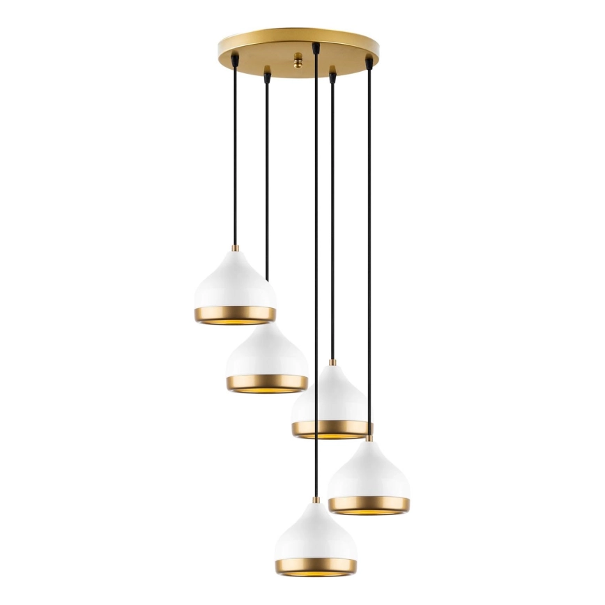 Ljuskrona med textilsladd YILDO 5xE27/40W/230V vit/guld | Lampmani