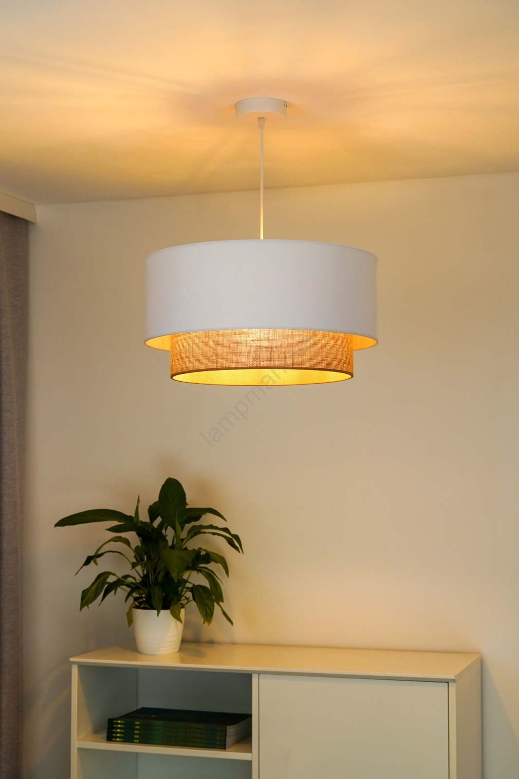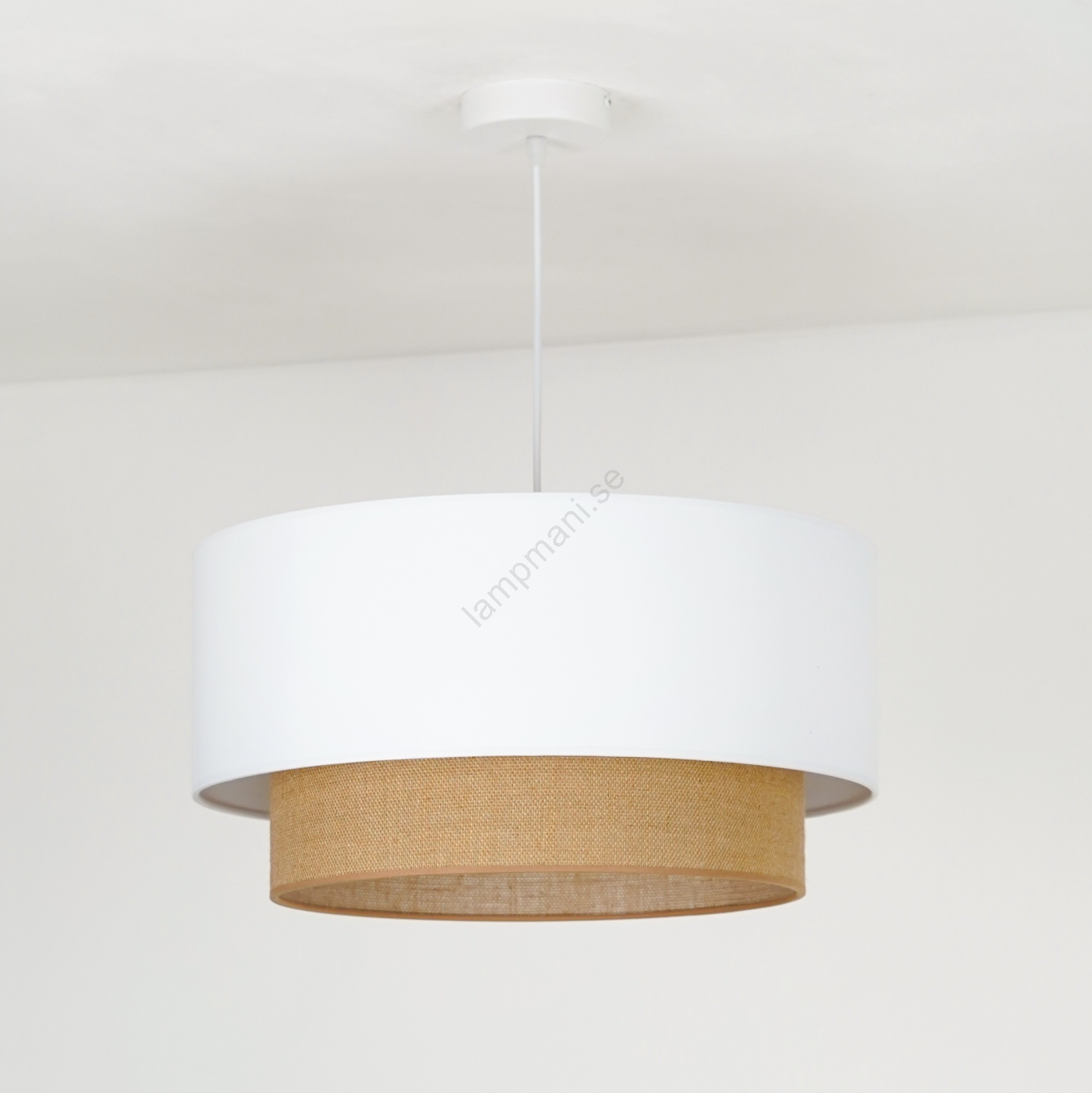 Duolla - Ljuskrona med textilsladd BOHO 1xE27/15W/230V diameter 45 cm vit/brun kännetecknar snygg och funktionell design. En glödlampa med E27 lock är lämplig för lampan. Här kan du köpa andra glödlampor till förmånliga priser. Du kommer att få ett intressant tillägg till ditt hem.