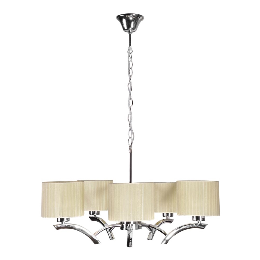 Ljuskrona med upphängningsrem DRAGA 5xE27/60W/230V beige/skinande krom | Lampmani