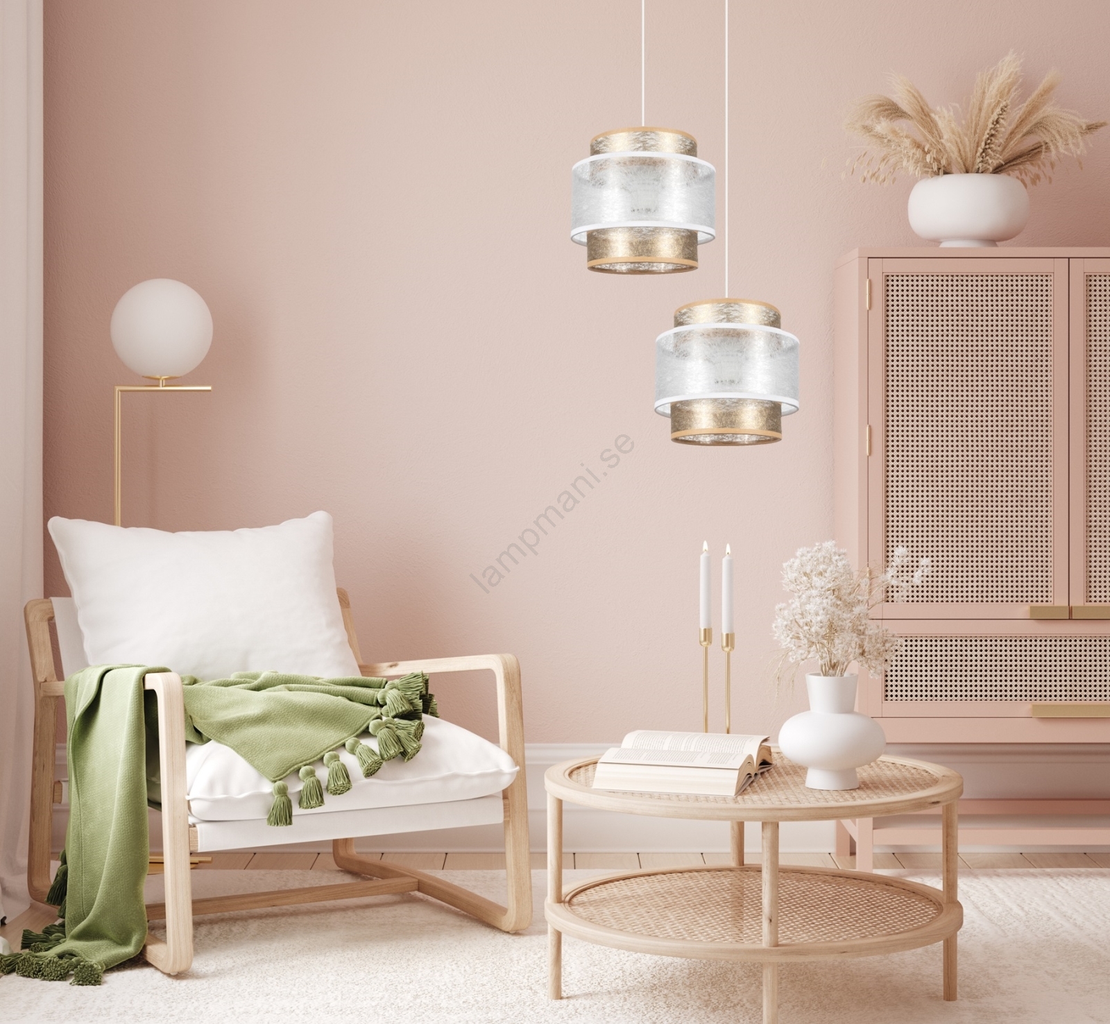 Ljuskrona med upphängningsrem GABI 2xE27/60W/230V gyllene/vit diameter 30 cm | Lampmani