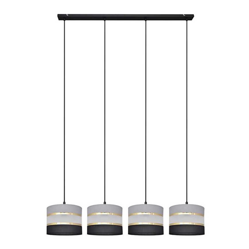 Ljuskrona med upphängningsrem HELEN 4xE27/15W/230V svart/grå/gyllene