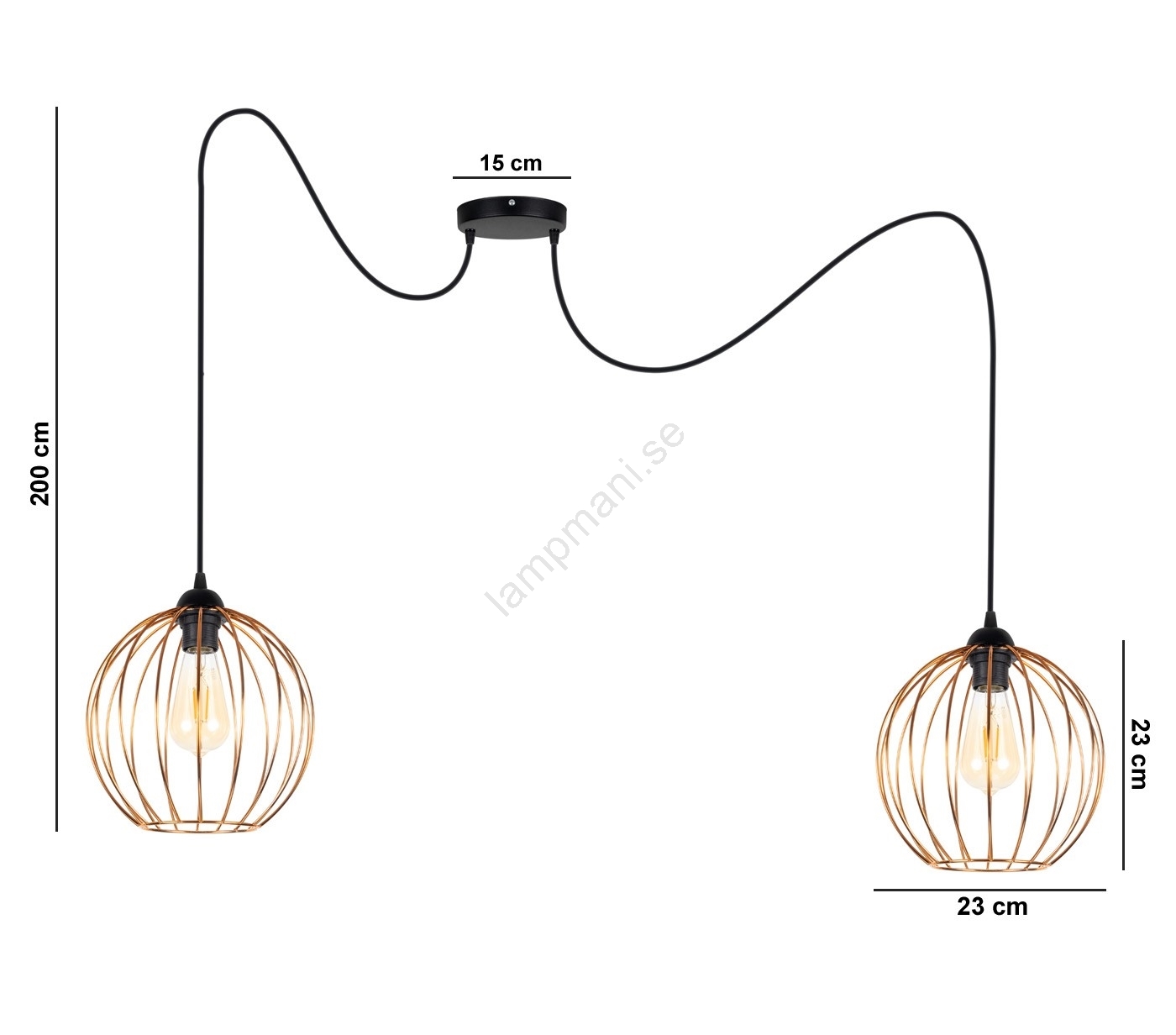 Ljuskrona med textilsladd MATT 2xE27/60W/230V spindel svart/koppar kännetecknar snygg och funktionell design. En glödlampa med E27 lock är lämplig för lampan. Här kan du köpa andra glödlampor till förmånliga priser. Du kommer att få ett intressant tillägg till ditt hem.