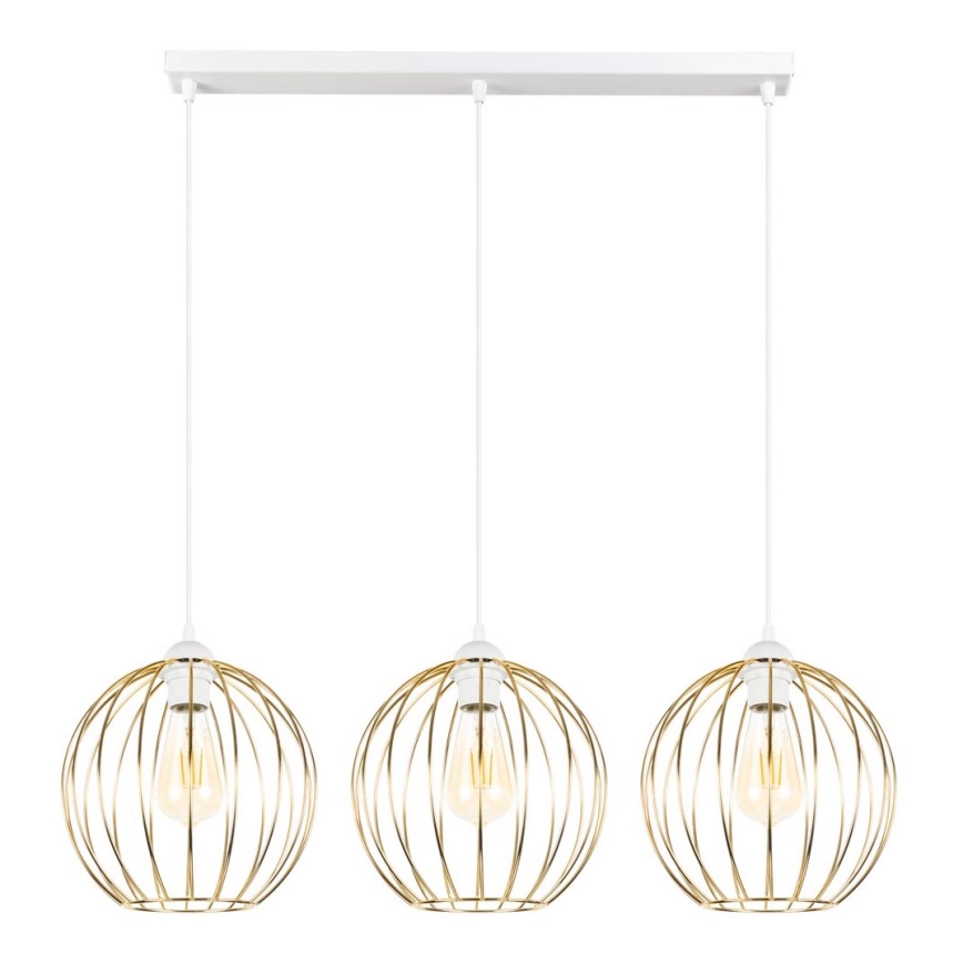 Ljuskrona med upphängningsrem MATT 3xE27/60W/230V vit/gyllene