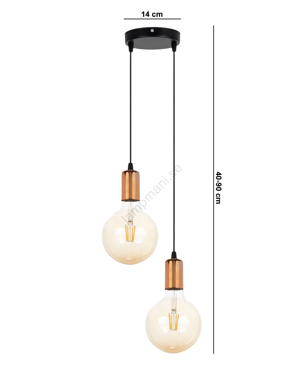 Ljuskrona med upphängningsrem MIROS 2xE27/60W/230V rund svart/koppar kännetecknar snygg och funktionell design. En glödlampa med E27 lock är lämplig för lampan. Här kan du köpa andra glödlampor till förmånliga priser. Du kommer att få ett intressant tillägg till ditt hem.