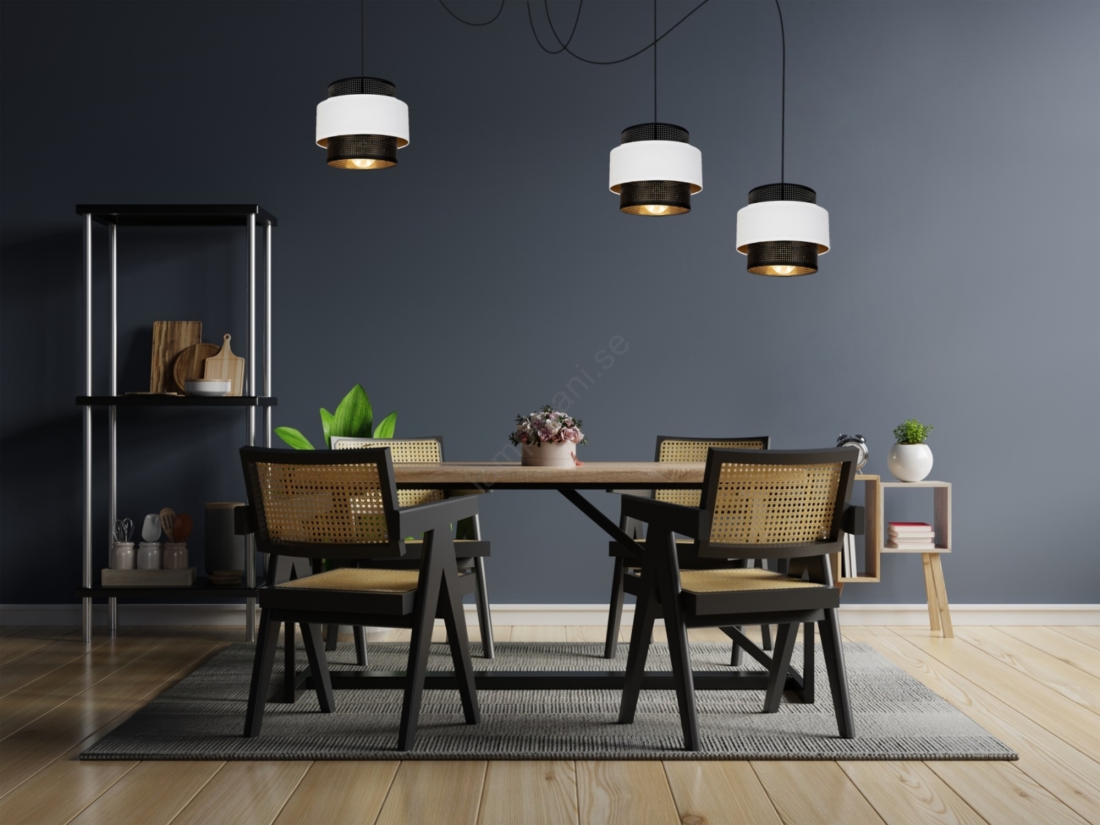 Ljuskrona med textilsladd NESS 3xE27/60W/230V spindel svart/vit kännetecknar snygg och funktionell design. En glödlampa med E27 lock är lämplig för lampan. Här kan du köpa andra glödlampor till förmånliga priser. Du kommer att få ett intressant tillägg till ditt hem.