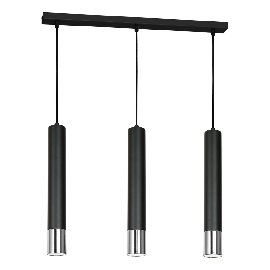 Ljuskrona med upphängningsrem NEST 3xGU10/8W/230V svart/skinande krom | Lampmani