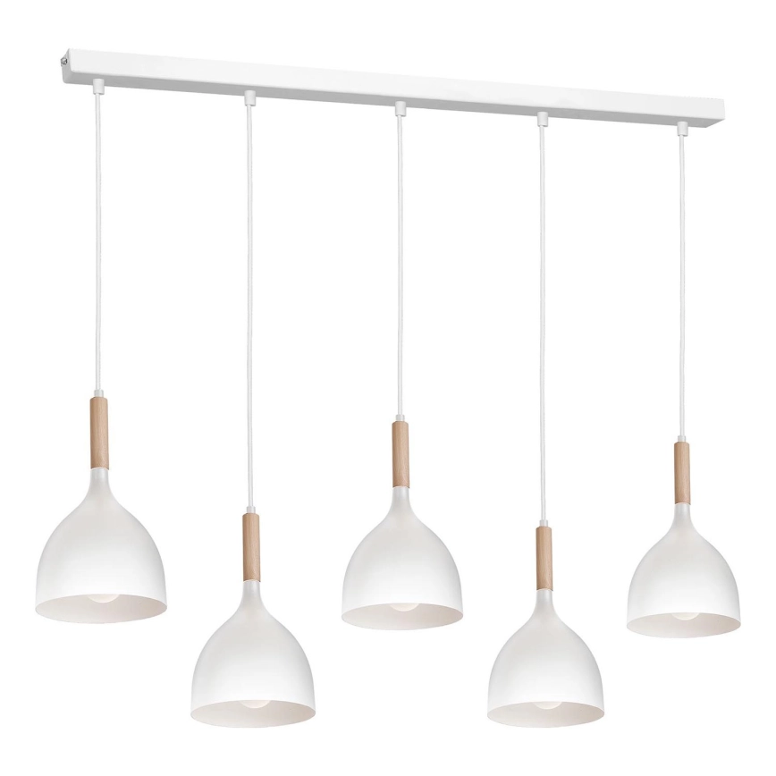 Ljuskrona med upphängningsrem NOAK 5xE27/60W/230V vit/trä | Lampmani