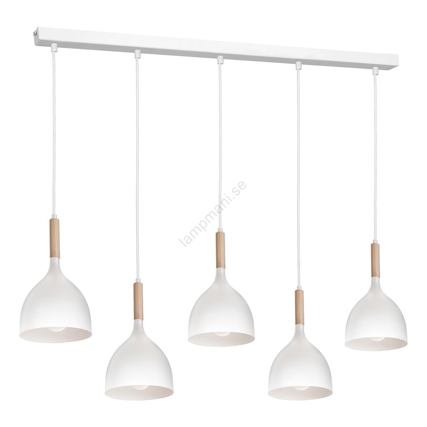 Ljuskrona med upphängningsrem NOAK 5xE27/60W/230V vit/trä kännetecknar snygg och funktionell design. En glödlampa med E27 lock är lämplig för lampan. Här kan du köpa andra glödlampor till förmånliga priser. Du kommer att få ett intressant tillägg till ditt hem.