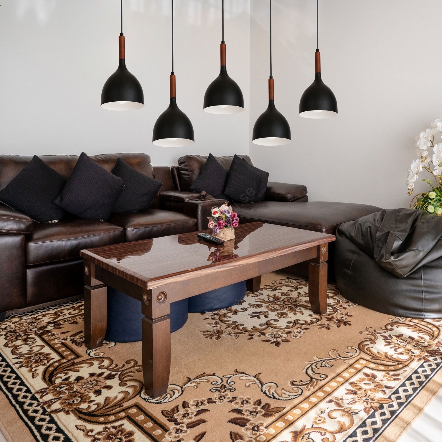 Ljuskrona med textilsladd NOAK WOOD 5xE27/15W/230V svart/bok kännetecknar snygg och funktionell design. En glödlampa med E27 lock är lämplig för lampan. Här kan du köpa andra glödlampor till förmånliga priser. Du kommer att få ett intressant tillägg till ditt hem.