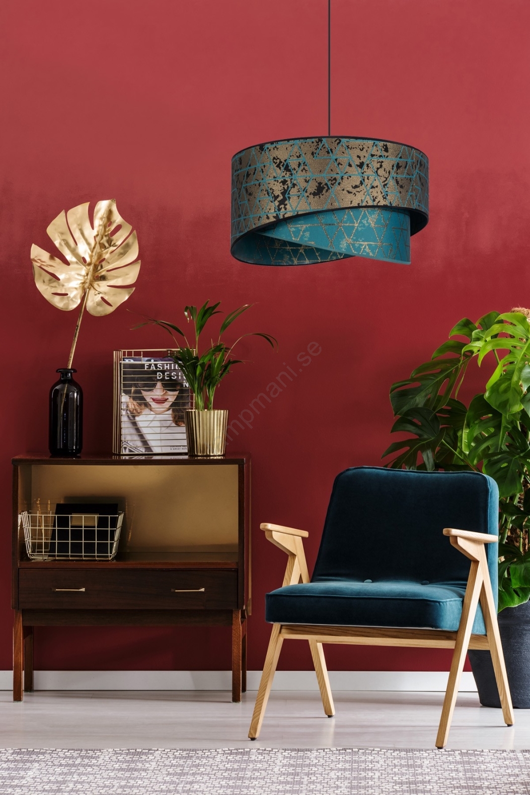 • Ljuskrona med upphängningsrem  REZO 1xE27/60W/230V turkos /gyllene
