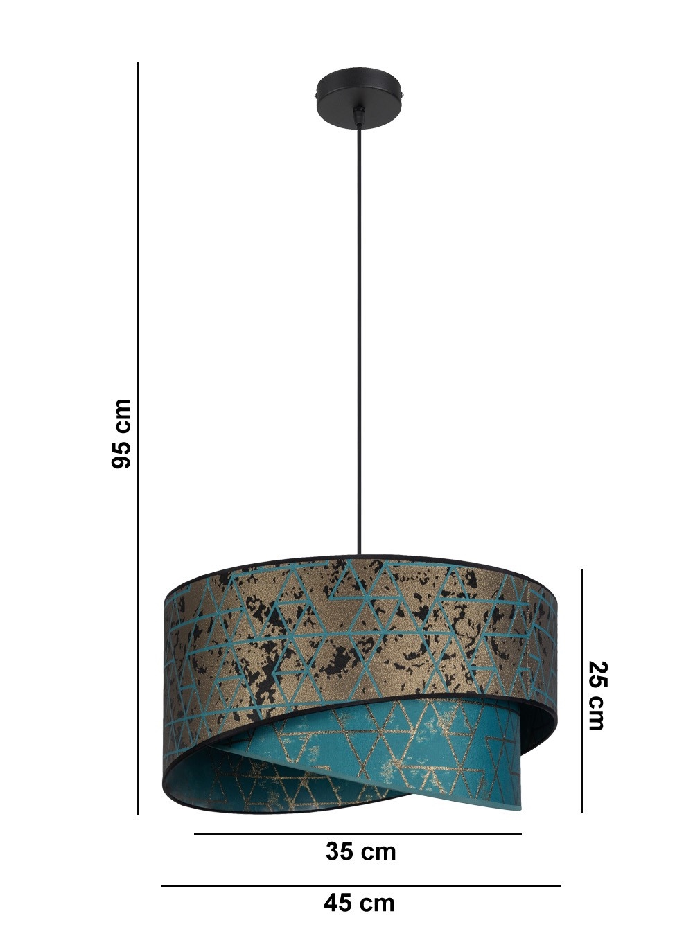 Ljuskrona med upphängningsrem REZO 1xE27/60W/230V turkos /gyllene | Lampmani