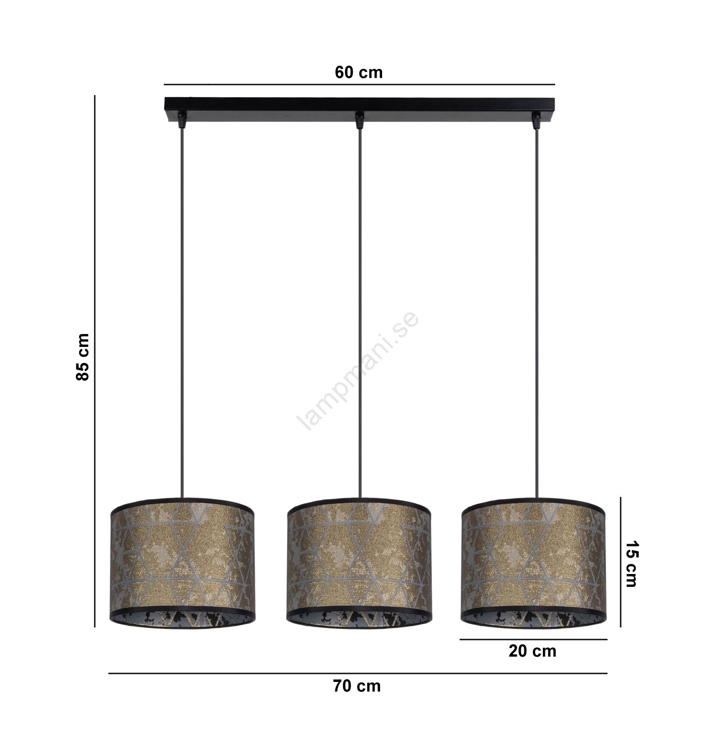Ljuskrona med upphängningsrem REZO 3xE27/60W/230V gyllene | Lampmani