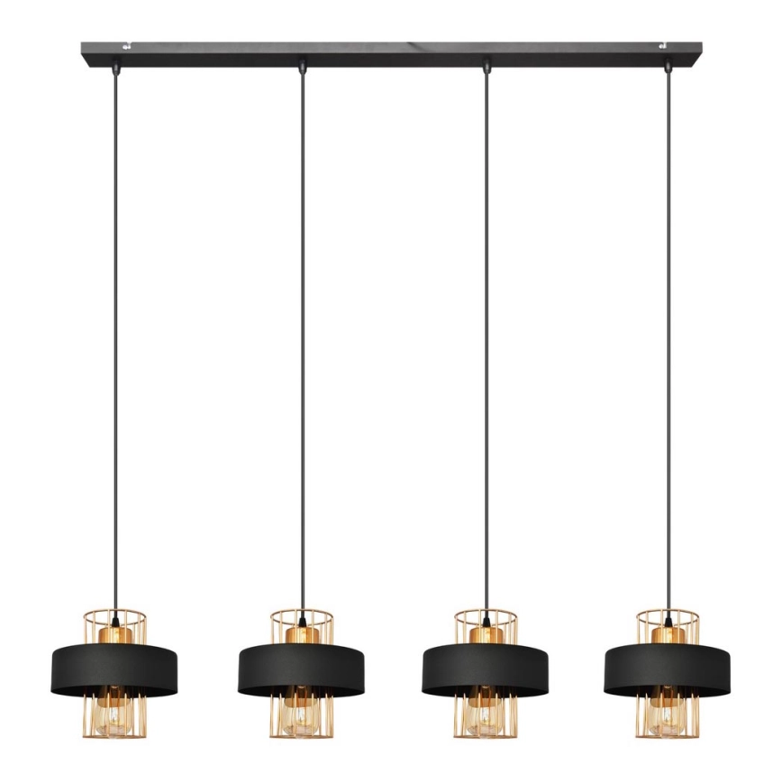 Ljuskrona med upphängningsrem VOLTA 4xE27/15W/230V svart/gyllene | Lampmani