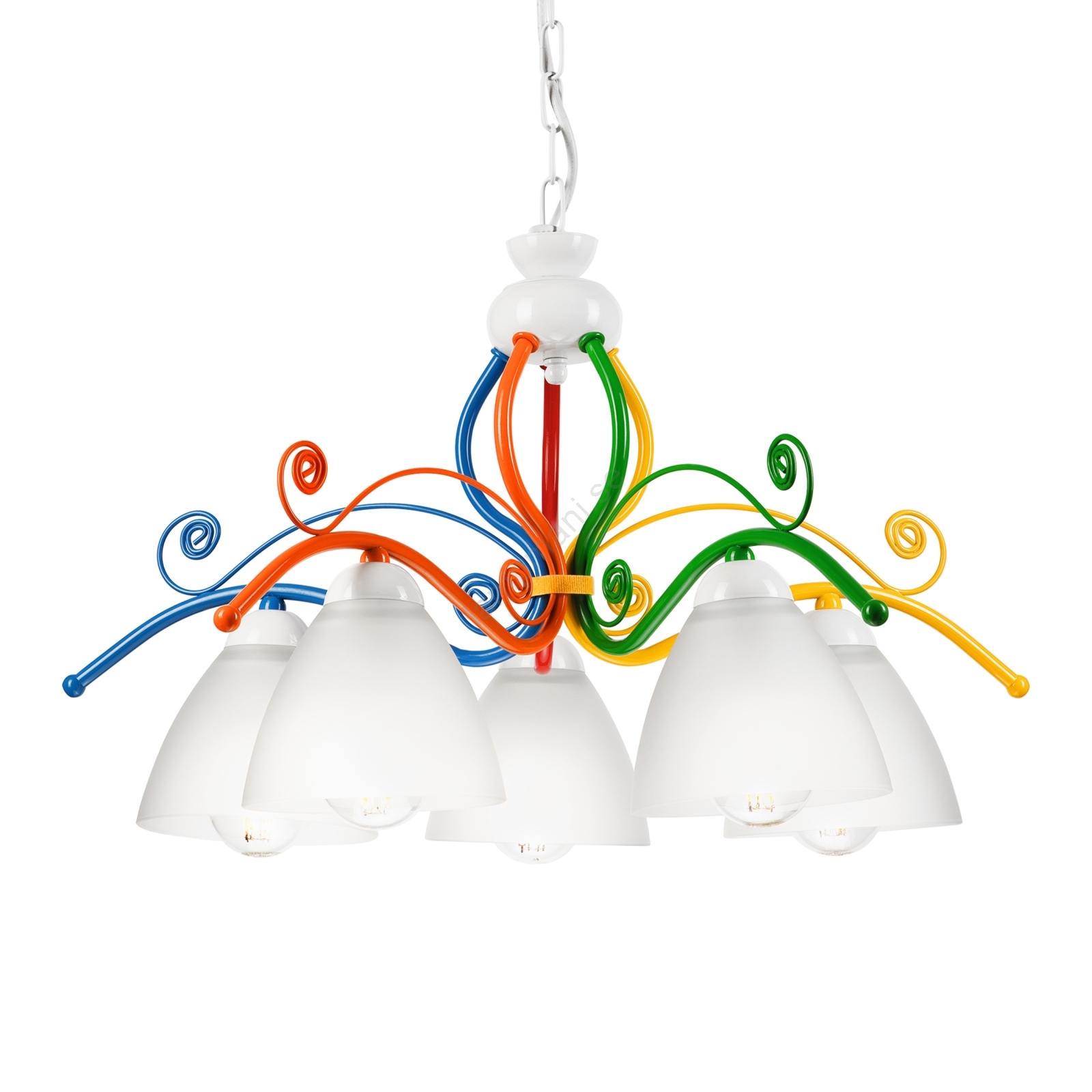 Ljuskrona på kedja RETRO 5xE27/60W/230V vit/färgrik | Lampmani