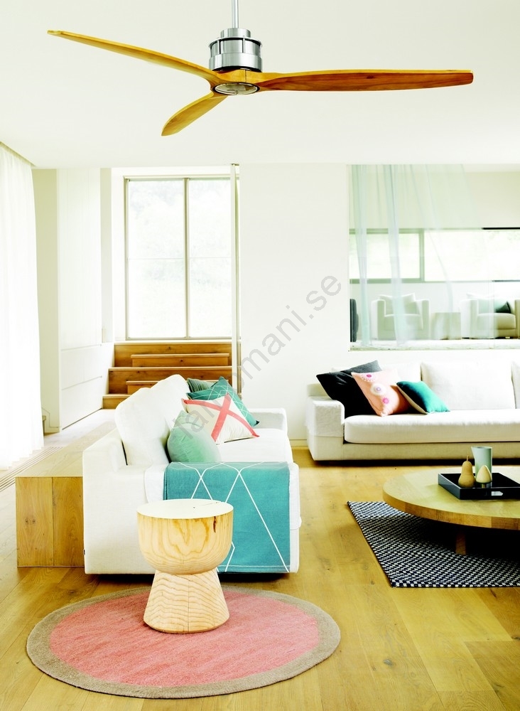 • Fläktbladen är tillverkade av massiv paulowniaträ med teakfärgad ytbehandling.