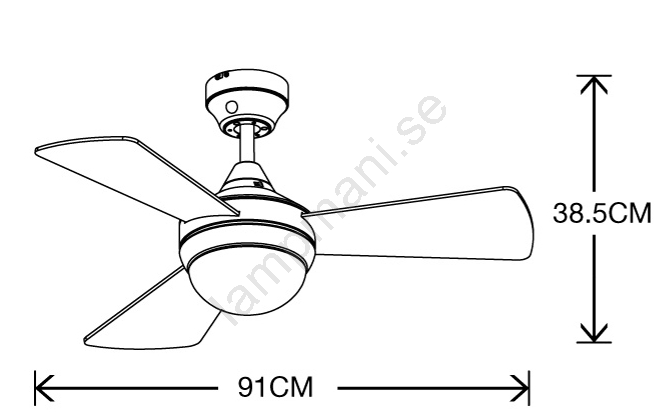 • Vändbara blad i MDF-trä – möjlighet att vända fläktbladen och ändra färg på synliga sidan (ek/vit).