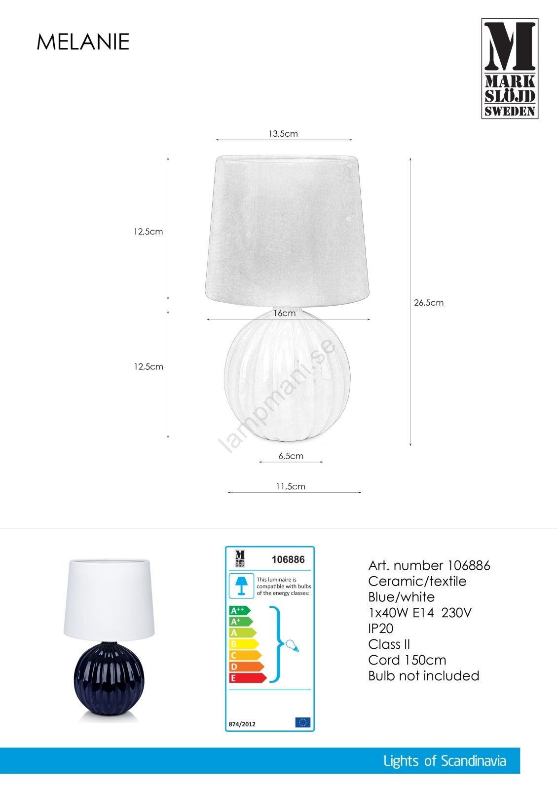 Markslöjd 106886 - Bordslampa MELANIE 1xE14/40W/230V vit/blå | Lampmani