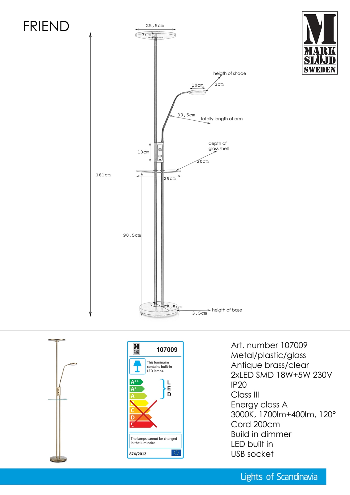 Markslöjd 107009 - LED Dimbar Golvlampa FRIEND LED/18W/230V + LED/5W | Lampmani