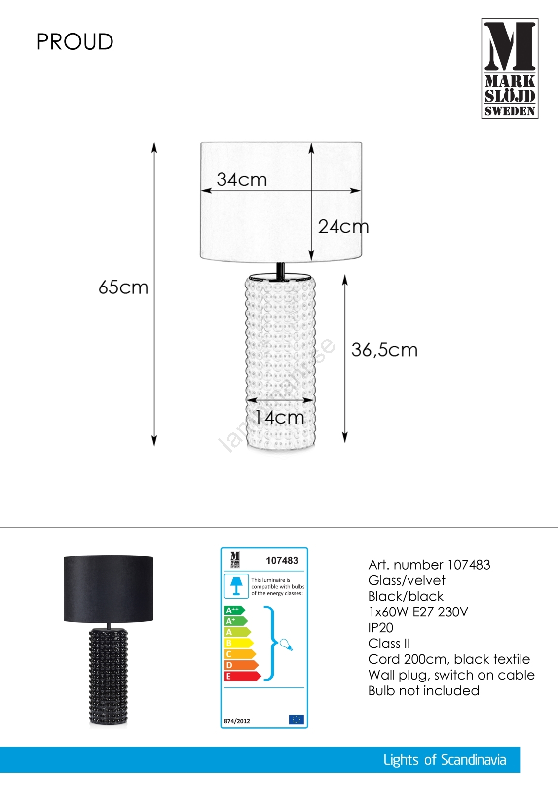 Markslöjd 107483 - Bordslampa PROUD 1xE27/60W/230V | Lampmani