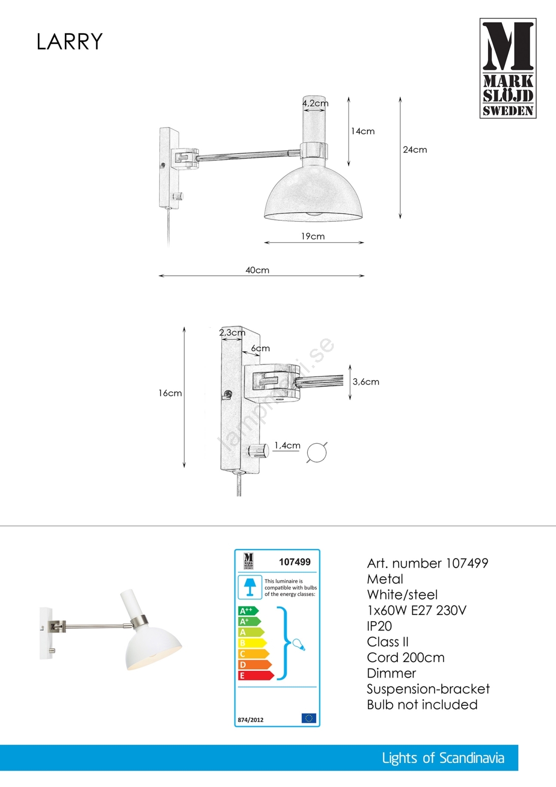 Markslöjd 107499 - Dimbart vägglampa LARRY 1xE27/60W/230V | Lampmani