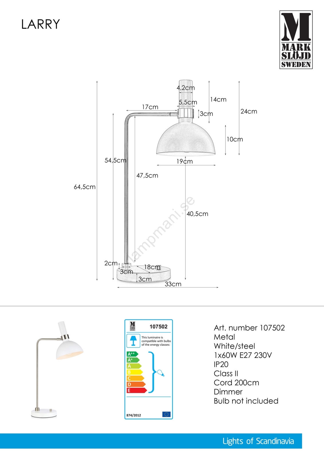 Markslöjd 107502 - Dimbar Bordslampa LARRY 1xE27/60W/230V | Lampmani