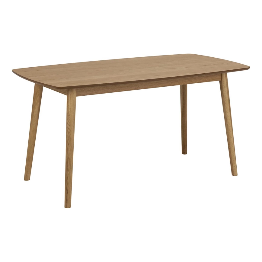 • Detta matbord kännetecknas av sin enkelhet, naturliga utseende och rundade hörn som framhäver dess varma charm.