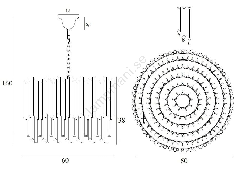 MAXLIGHT P0284 - Ljuskrona på kedja VOGUE 12xE14/40W/230V diameter 60 cm guld | Lampmani