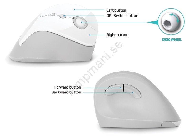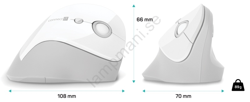 CONNECT IT CMO-2700-WH - Ergonomisk trådlös mus 800/1200/1600 DPI 1xAA vit | Lampmani