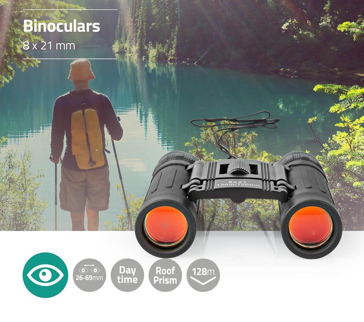 Nedis SCBI1000BK - Binokulärt teleskop 8x21 | Lampmani