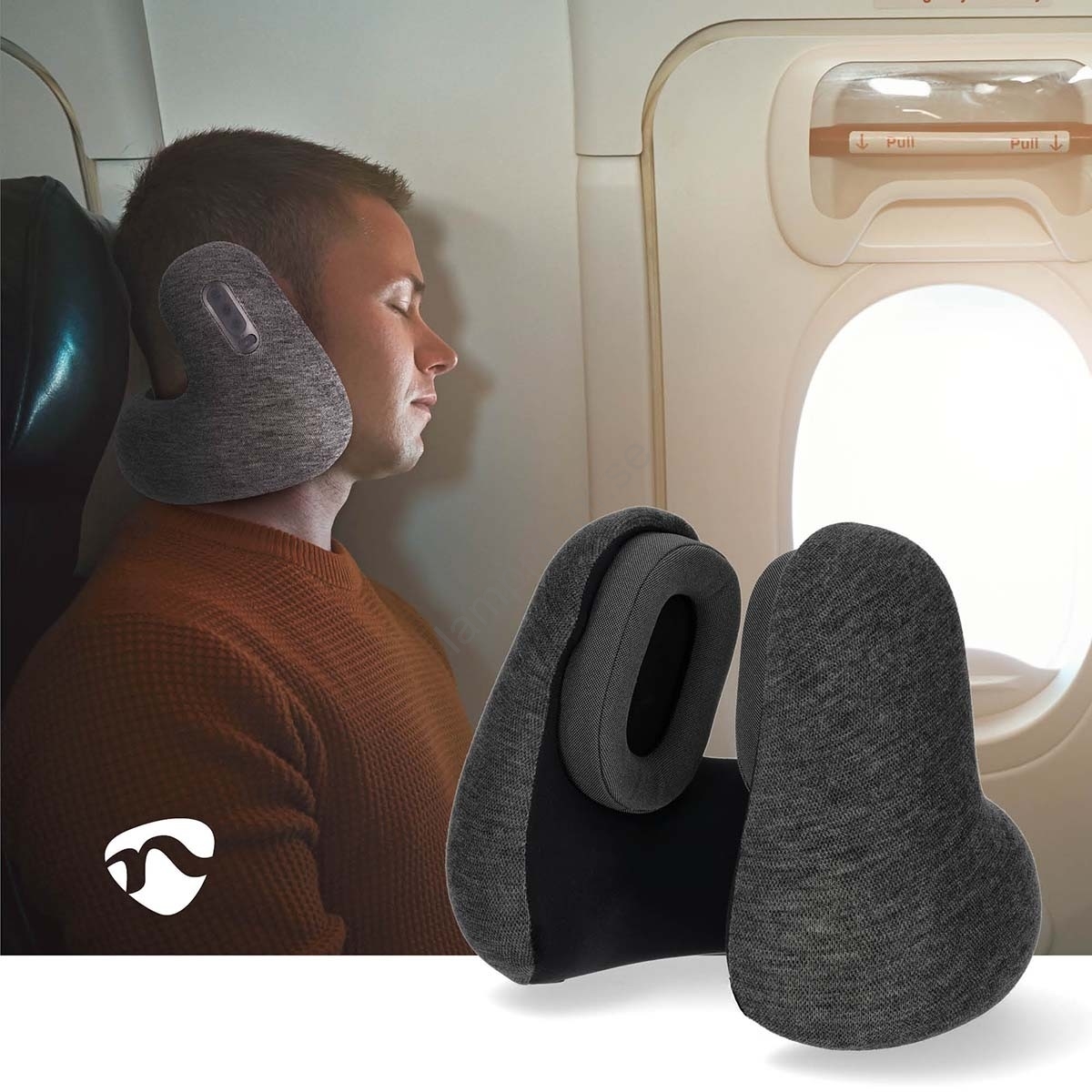 Nedis TRBT2400BK - Resekudde med inbyggda trådlösa hörlurar, grå | Lampmani