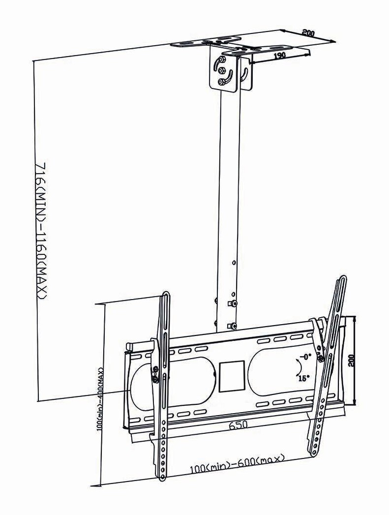 • Takfäste för TV, lämpligt för de flesta TV-apparater med skärmstorlek från 42" till 65".