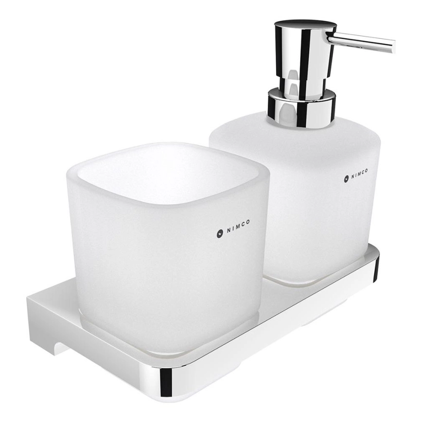 NIMCO MA 2905831C-26 - Tvålpump för vägg och tandborsthållare MAYA 320 mm matt glas/skinande krom