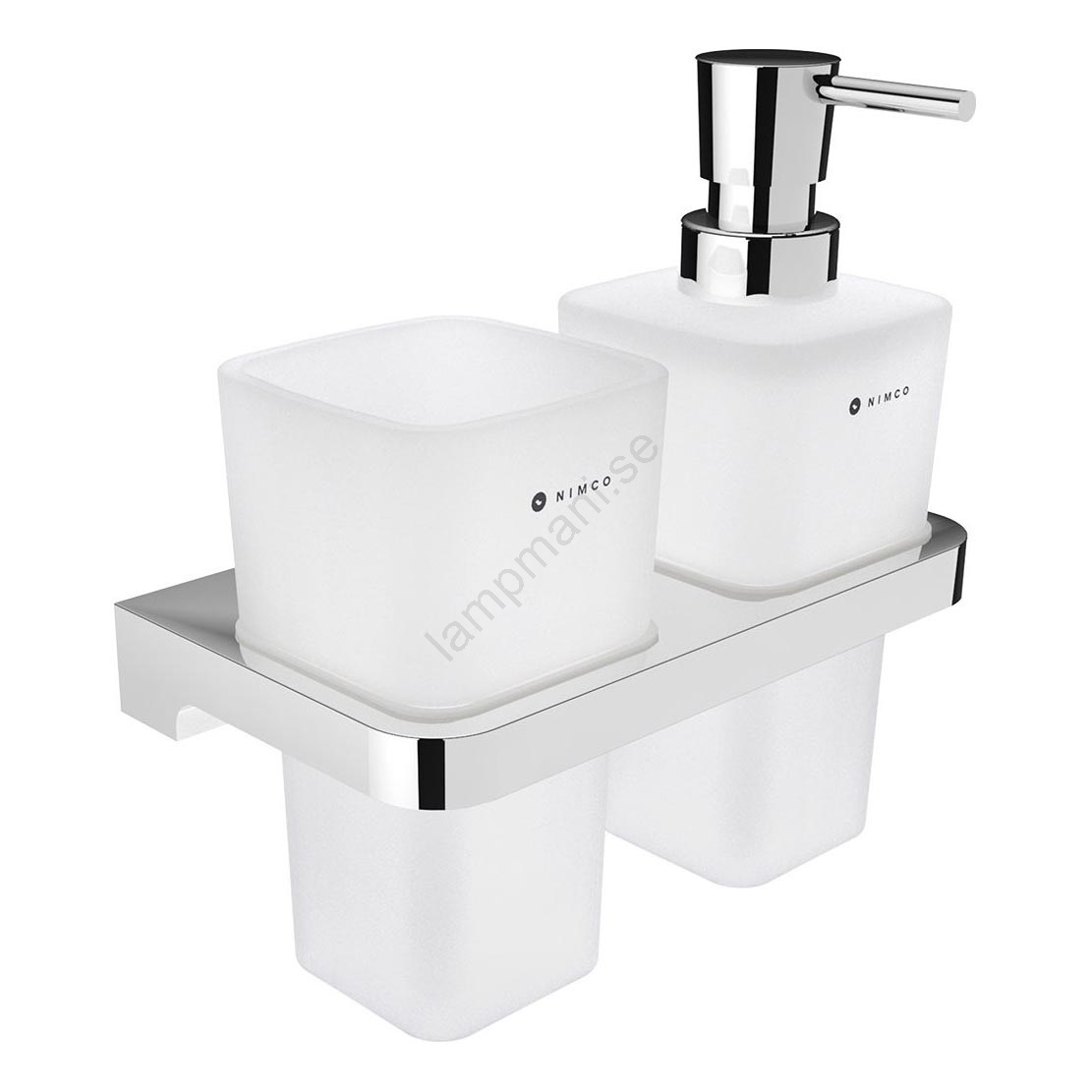 NIMCO MA 2905831H-26 - Tvålpump för vägg och tandborsthållare MAYA 290 mm matt glas/skinande krom